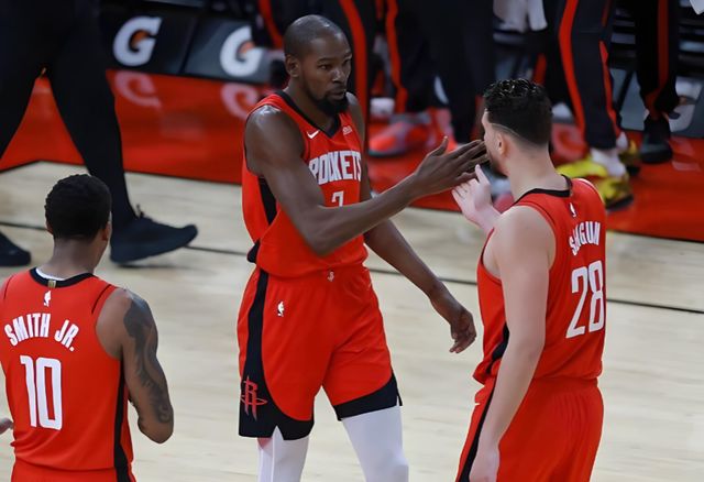 但从比赛过程来看,火箭的表现其实并没有太差,开局的两连败,火箭仅仅只输了5分,残阵火箭的攻防体系并没有完全崩盘。没有范乔丹,乌杜卡就让杜兰特出任控球核心,后续大胆启用奥科吉进入首发,围绕年轻人的活力盘活体系,关键时刻再交由杜兰特收比赛。